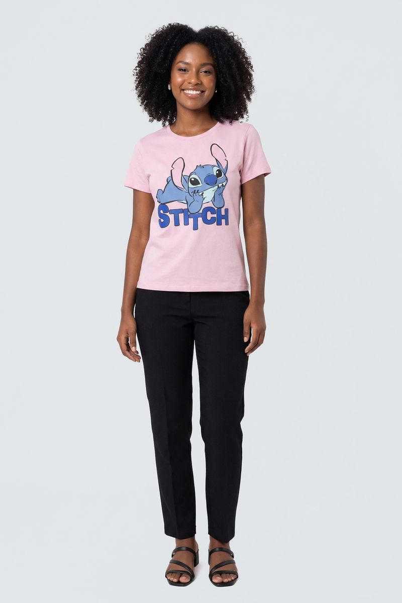 Desperte seu lado divertido com a Camiseta Feminina Rosa Stitch Disney Caedu. Confeccionada em 100% poliéster, esta peça de manga curta e gola redonda oferece conforto e leveza. A estampa vibrante do Stitch adiciona um toque de alegria e estilo único ao seu visual, ideal para quem busca roupas com personalidade.