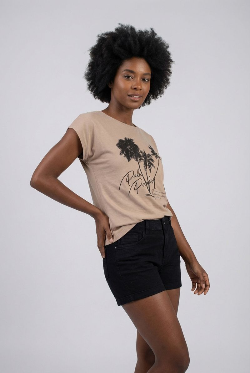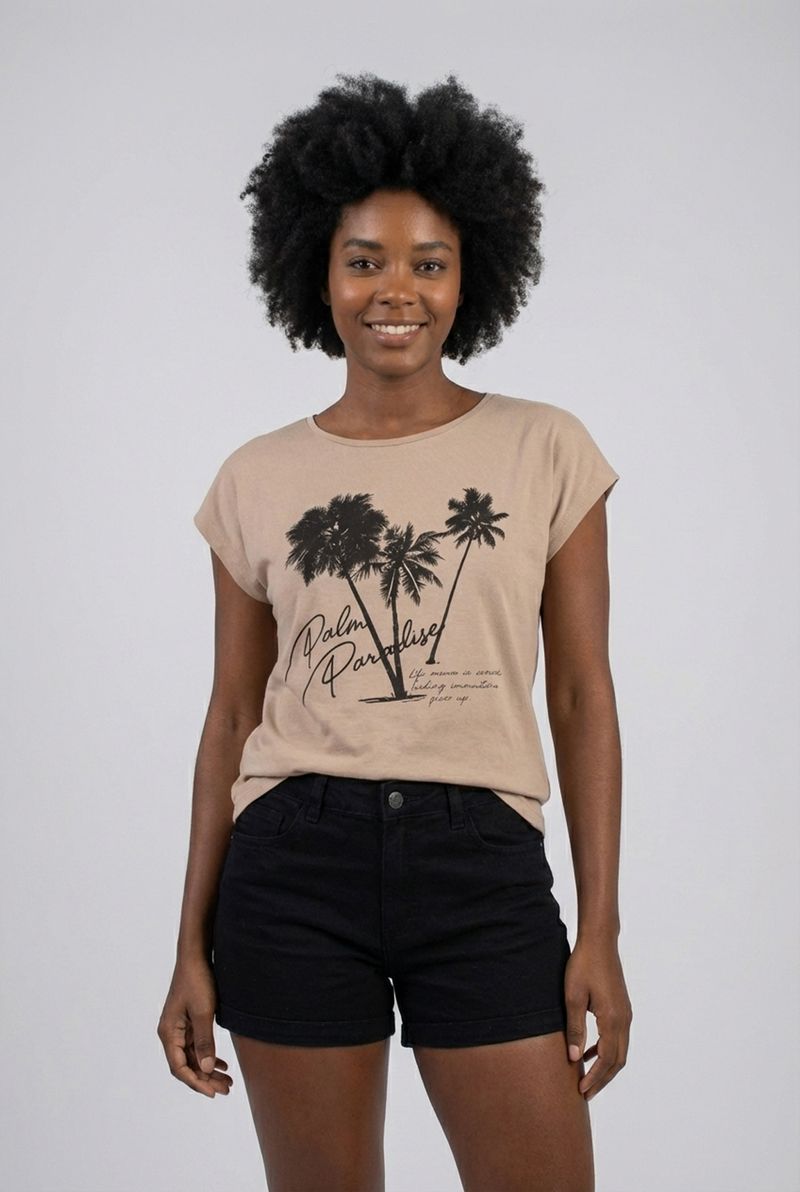 Sinta a brisa do paraíso com a Blusa Feminina Viscose Estampada Palm Paradise Bege Manga Curta Caedu. Confeccionada em viscose macia, esta peça de moda oferece conforto e um toque tropical. Seu design com estampa exclusiva e cor bege médio é perfeito para criar looks inspiradores e cheios de estilo.