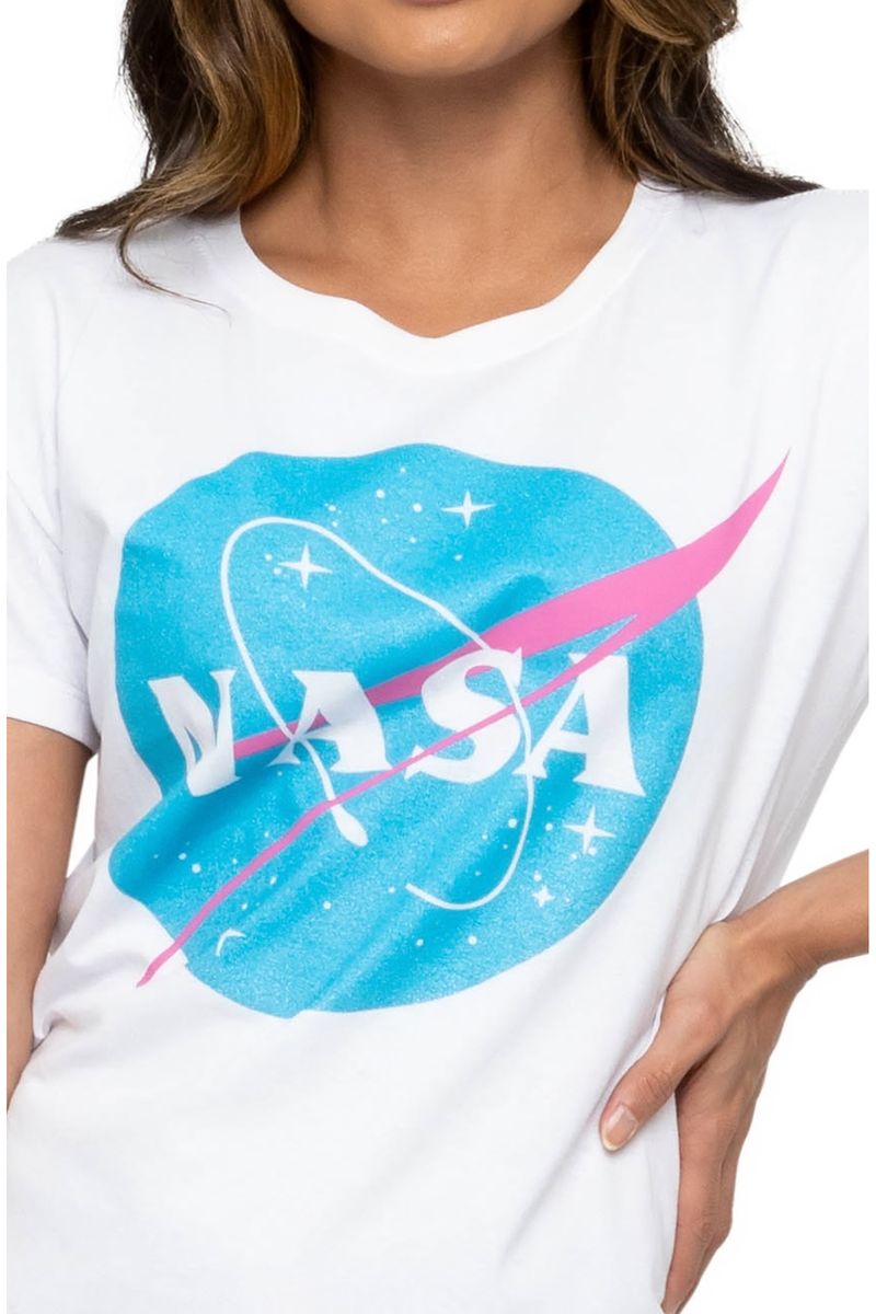 VestuárioOfertasFemininoNovidadesFemininoBlusas e CamisetasBlusa Feminina Casual com Estampa NASA Branca