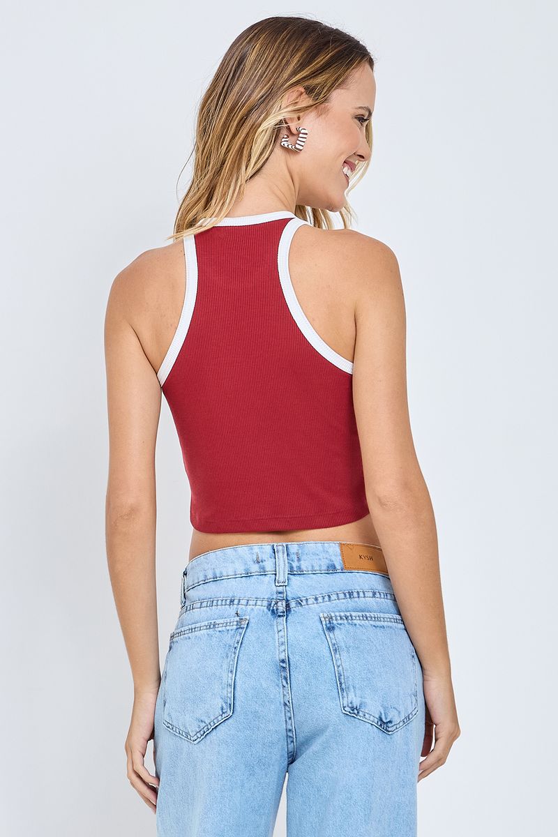 A Regata Feminina Canelada Vinho Caedu, em ribana 100% poliéster, oferece conforto e caimento ajustado. Detalhes em off white na gola e cavas realçam a peça, ideal para looks de moda versáteis. Essencial em suas roupas Caedu.