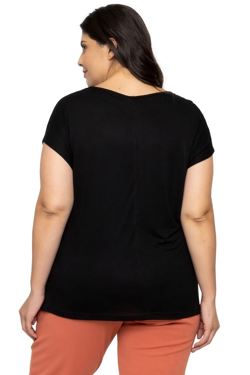 Esta blusa tem o poder de se encaixar em qualquer look perfeitamente, pois sua versatilidade permite diversas composições com outras peças para diferentes ocasiões. Este tipo de peça pode ser encontrada em cores variadas e vai de combinações mais simples até as mais elaboradas. Aposte com um jeans liso para looks mais básicos e com saias, bermudas ou shorts estampados para looks divertidos e ainda por baixo de um blazer, por exemplo, para looks mais formais. Modelo plus size.