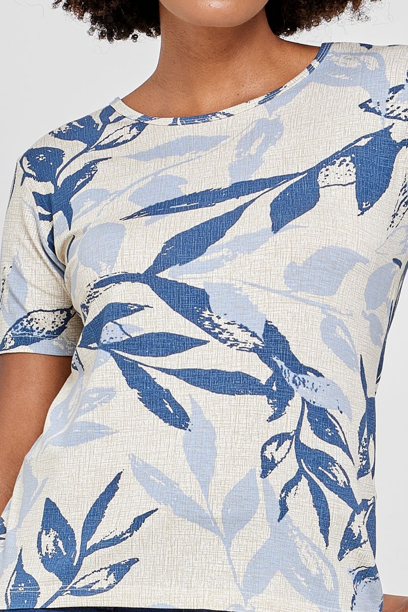 - Marca: Caedu - Material: 95% viscose, 5% elastano - Estampa: Diversas - Gola: Redonda - Manga: Curta - Estilo: Casual - Modelagem: Solta