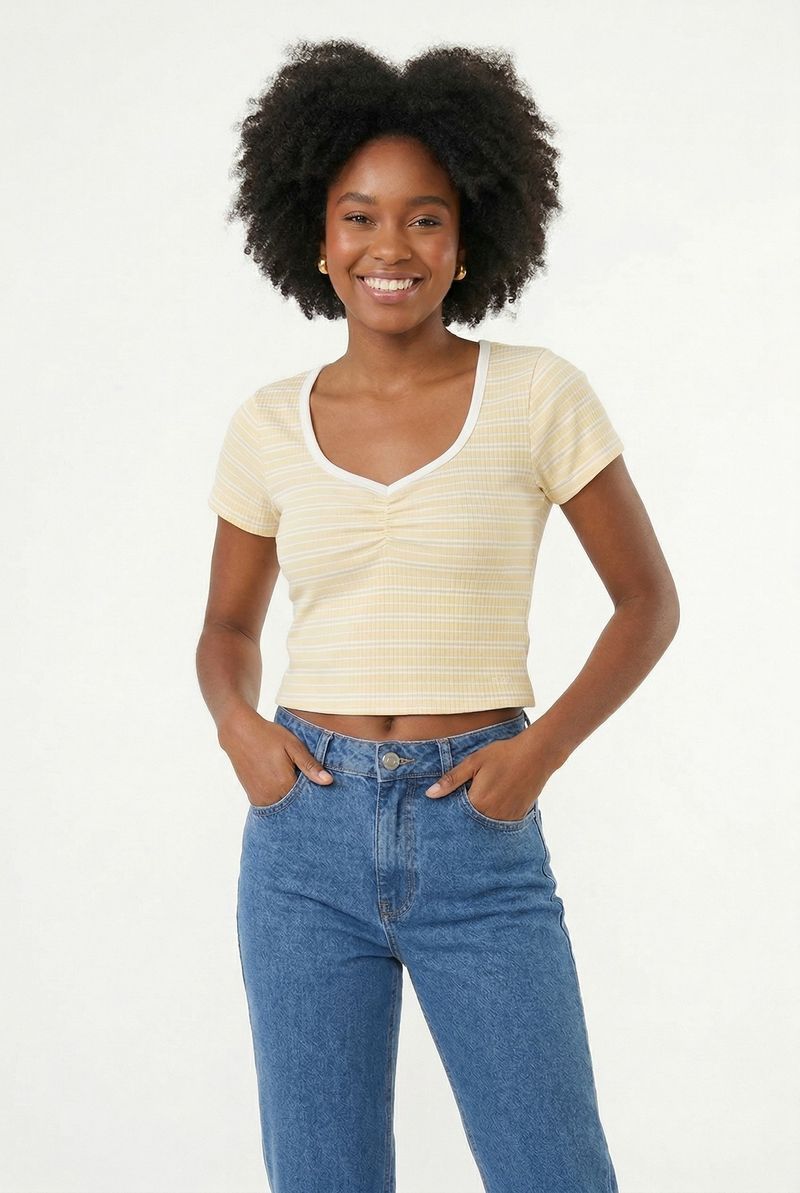 VestuárioFemininoBlusas e CamisetasBlusa fem rom frl303 m/c franz listr vin estampado