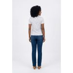 Combine com uma calça jeans de cor escura para um visual despojado, como a modelo, ou uma saia midi para um toque mais sofisticado. Complete com sandálias de salto bloco em tons neutros ou tênis para um estilo casual e confortável. Adicione acessórios discretos para realçar a estampa floral.