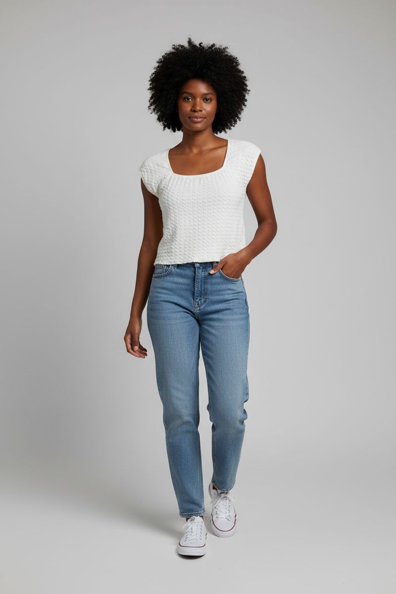 Descubra a Blusa Feminina Off White da Caedu, uma peça essencial que combina elegância e modernidade. Com sua malha texturizada e decote quadrado, ela oferece um caimento perfeito e um toque sofisticado. Sinta-se confiante e estilosa com esta roupa versátil, ideal para quem busca moda e conforto.