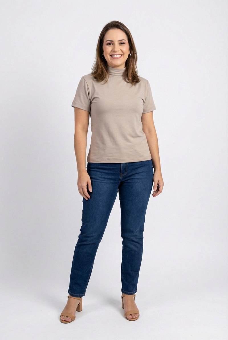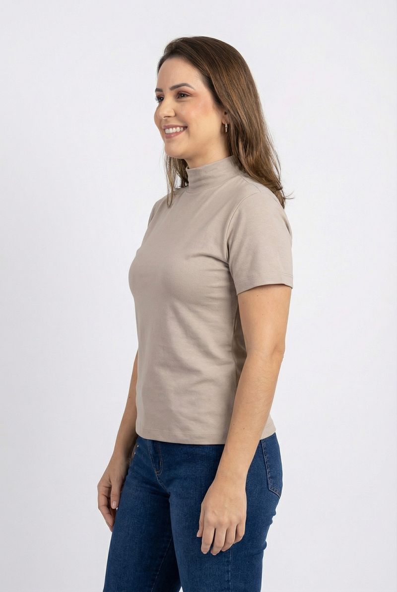 Blusa fem rom prog m/c gola alta bg cl bege claro