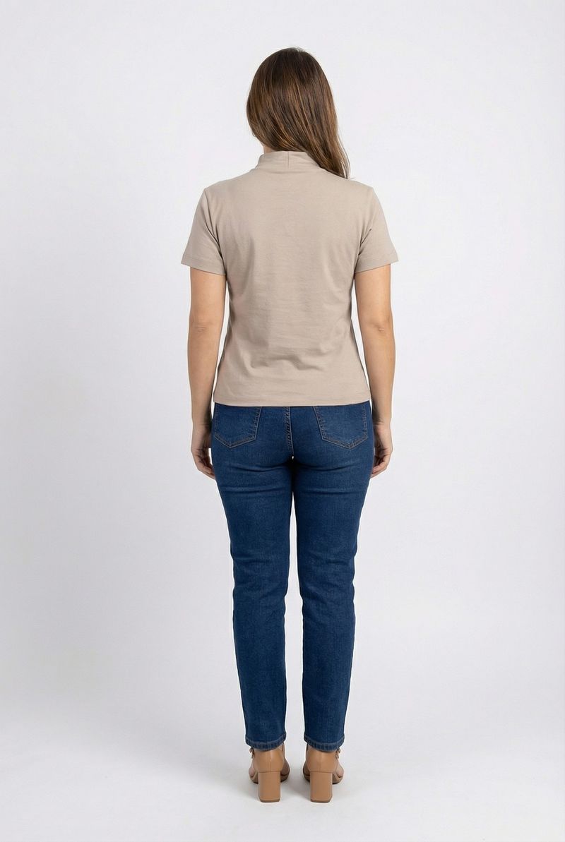 VestuárioFemininoBlusas e CamisetasBlusa fem rom prog m/c gola alta bg cl bege claro