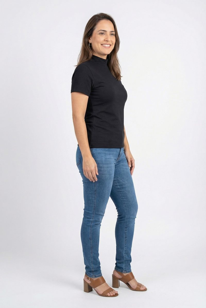 Blusa fem rom prog m/c gola alta preto preto