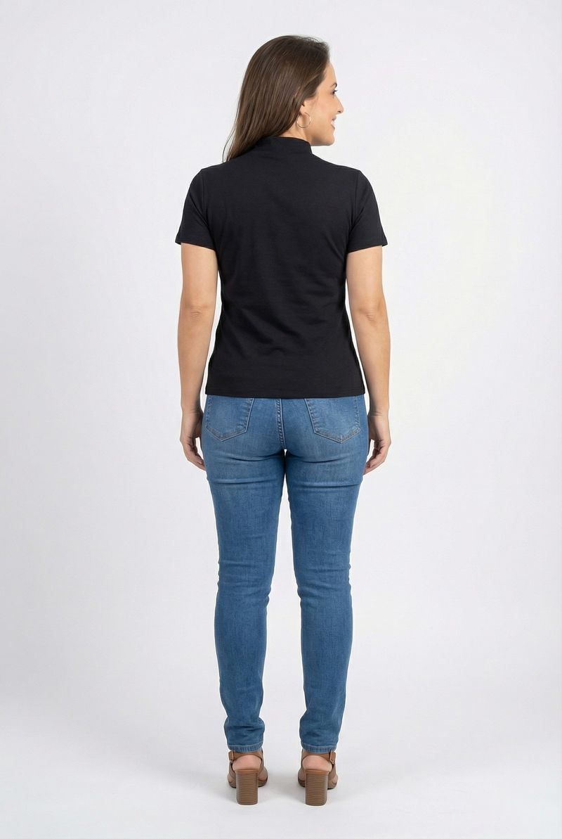VestuárioFemininoBlusas e CamisetasBlusa fem rom prog m/c gola alta preto preto