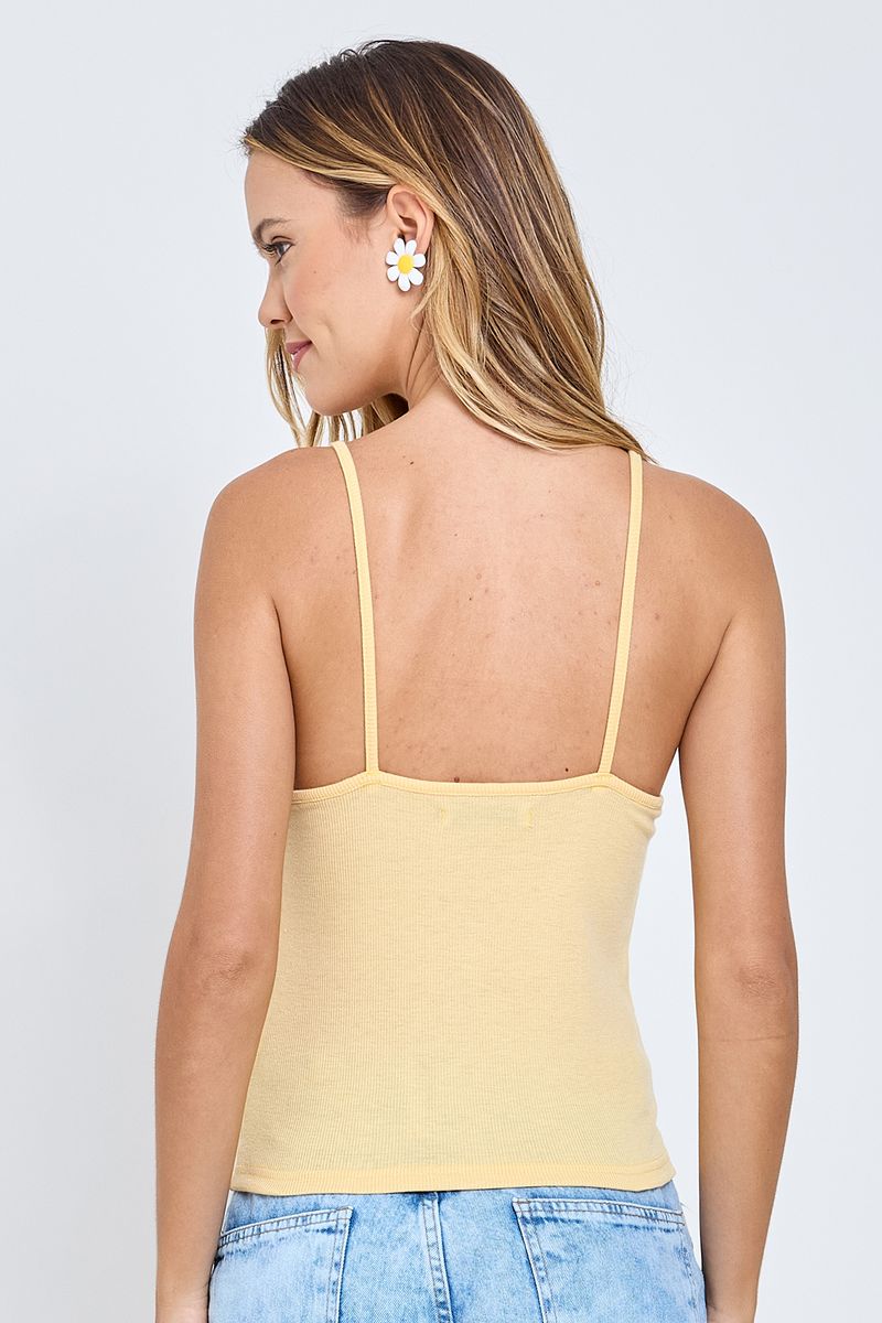 A Blusa Regata Feminina Canelada Amarelo Claro com Renda Delicada Caedu é ideal para diversas ocasiões. Use-a em um passeio descontraído no parque, um almoço com amigos, um encontro casual ou até mesmo para um dia relaxante em casa, sempre com muito estilo e conforto.