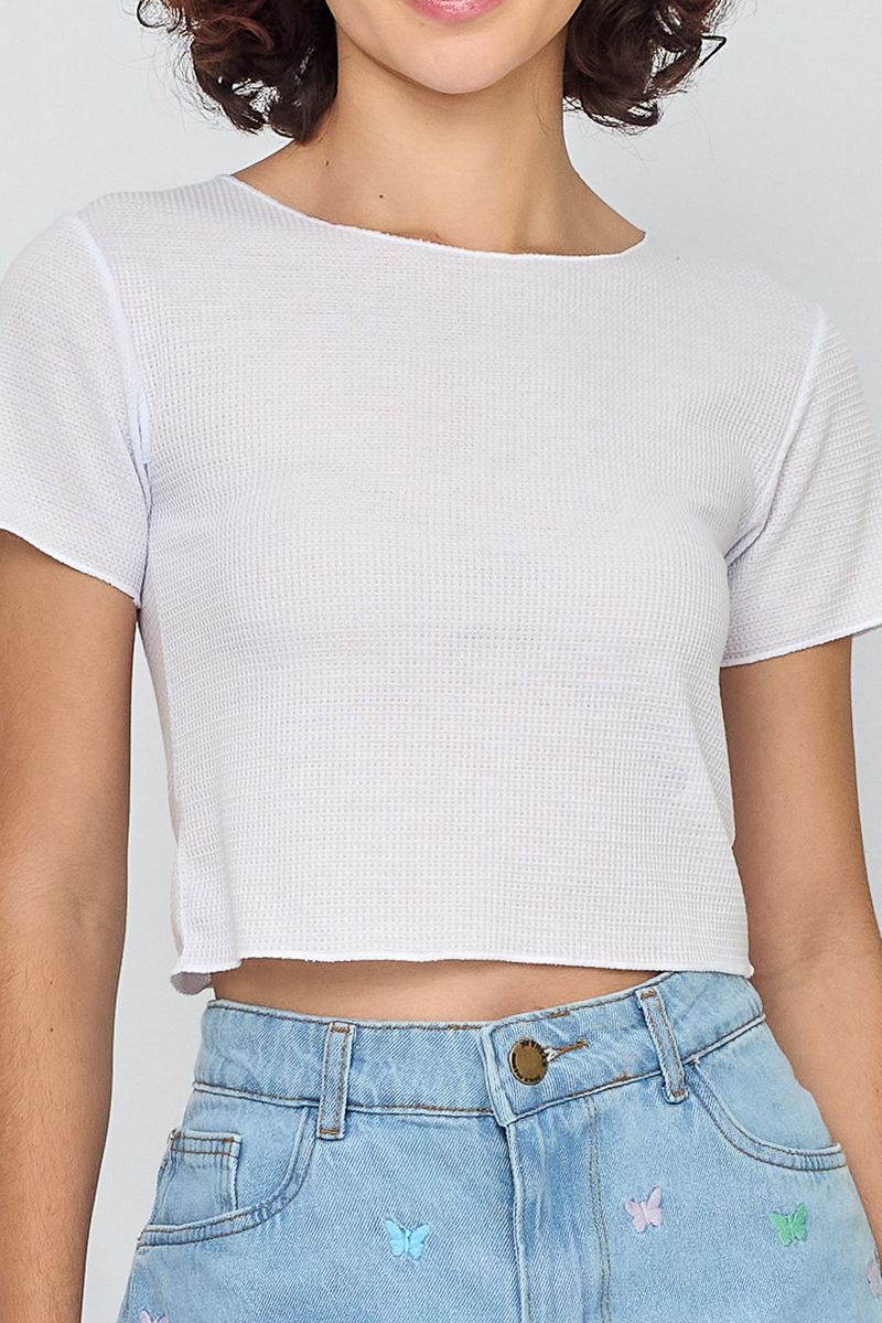 VestuárioOfertasFemininoNovidadesFemininoClube Cartão CaeduBlusas e CamisetasBlusa Feminina Básica Branca Caedu Piquet - Conforto e Estilo