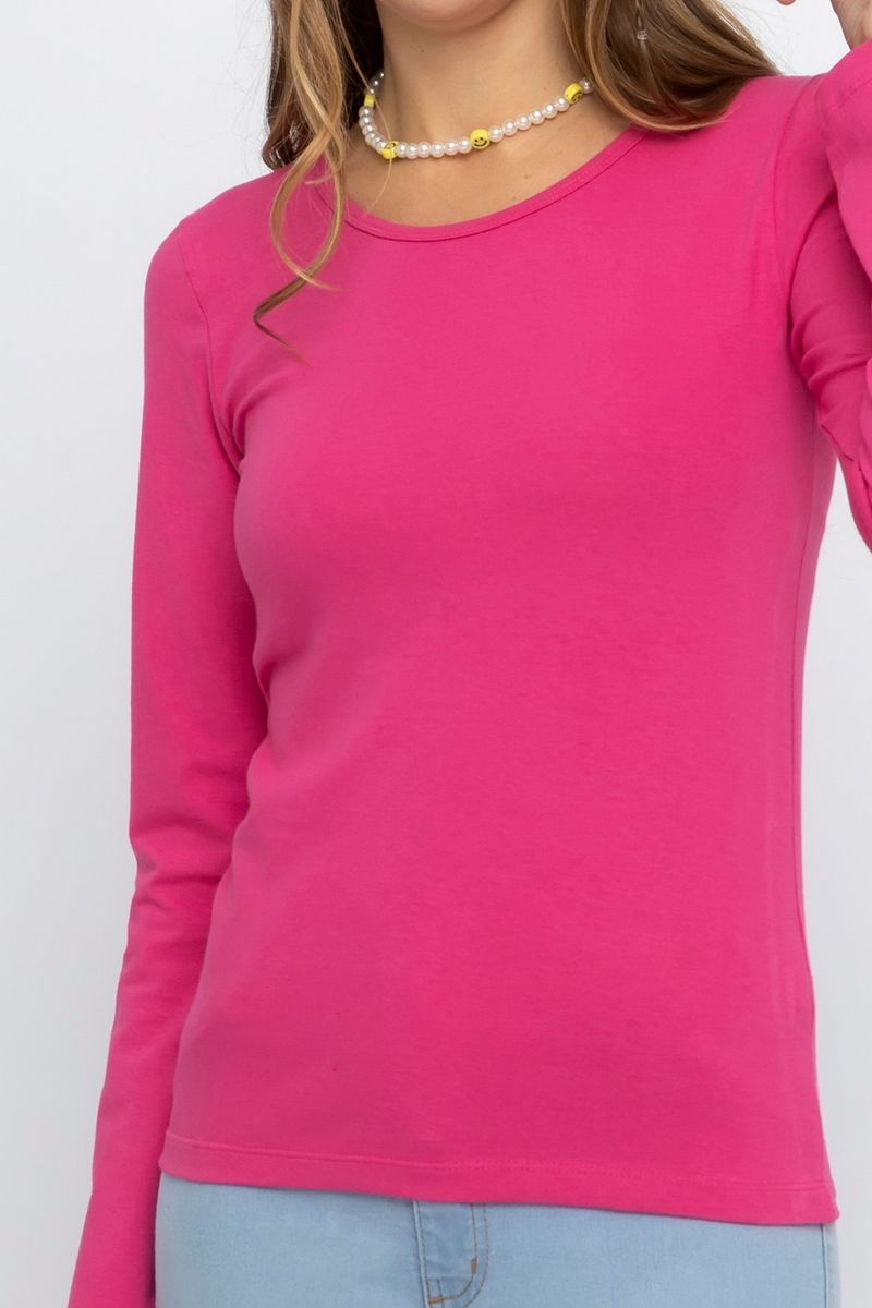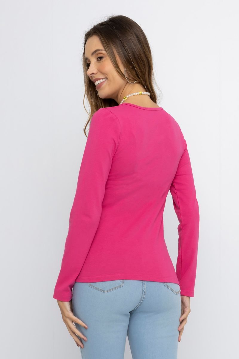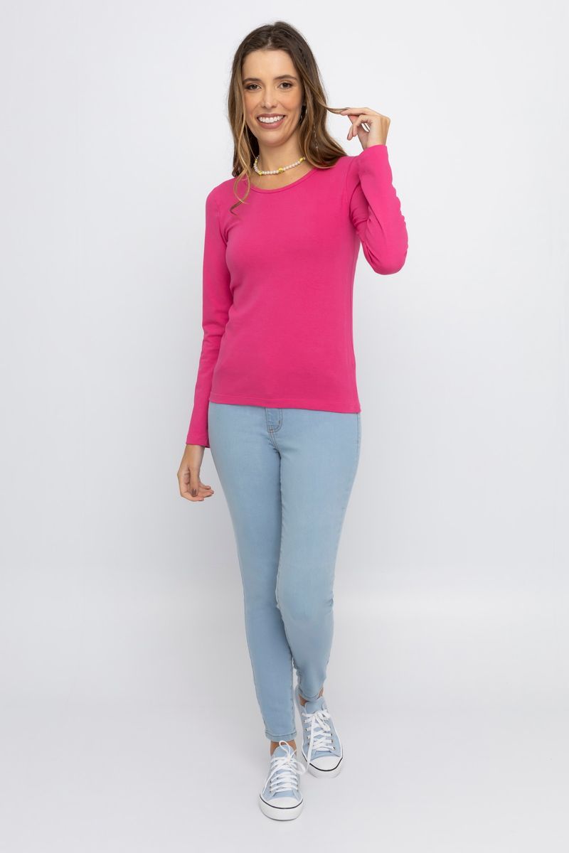 Blusa feminina confeccionada em cotton. A peça possui decote redondo, estampa e manga longa.