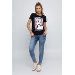 Blusa feminina estampada. Possui decote redondo e manga curta.