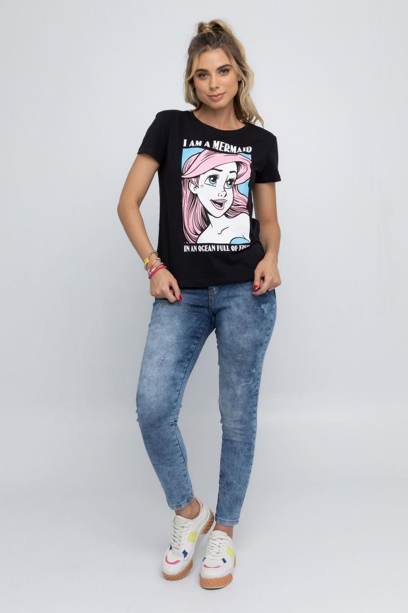 VestuárioFemininoNovidadesTopsFemininoClube Cartão CaeduBlusa Feminina com Estampa Princesa Ariel Preta