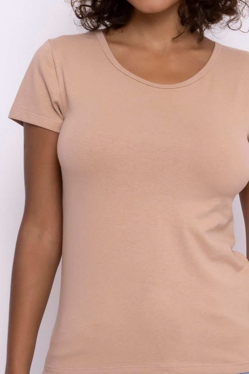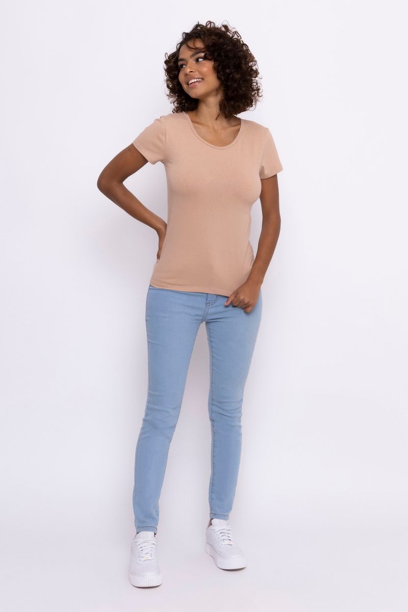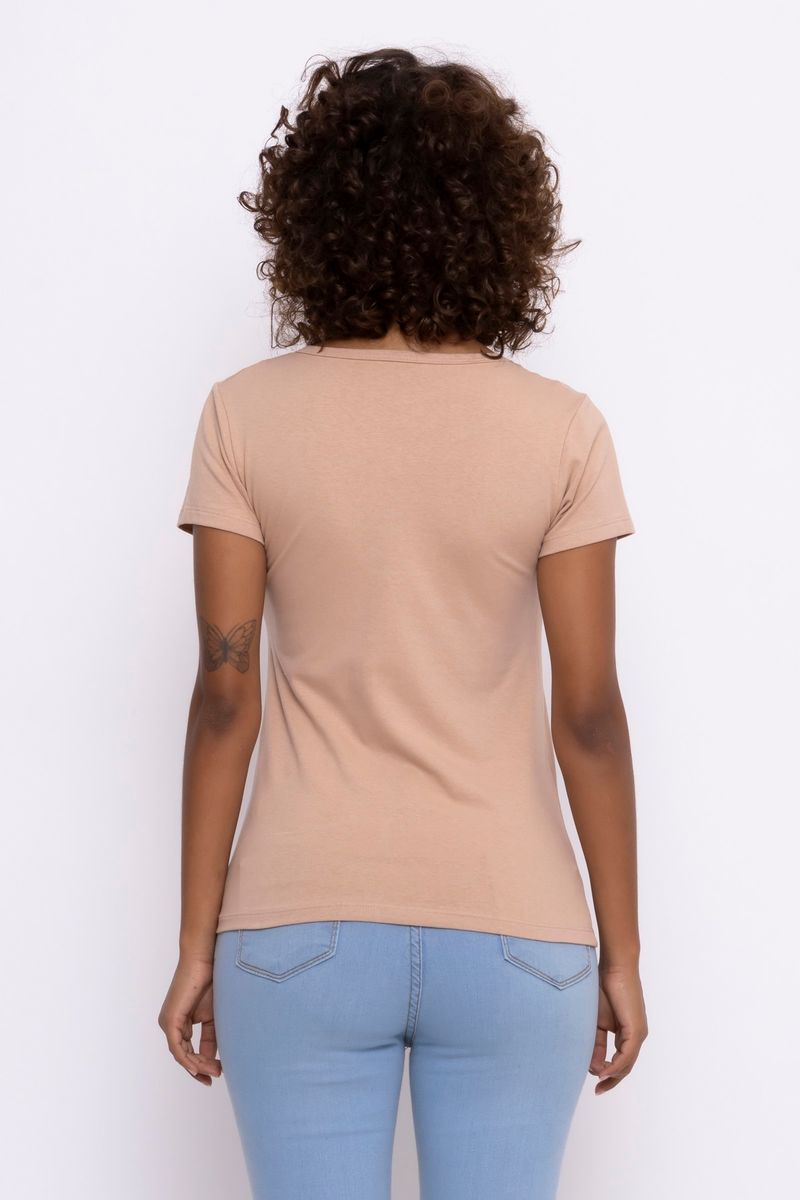 Descubra a Blusa Feminina em Cotton Bege Caedu, perfeita para quem busca conforto e estilo casual. Com decote U e manga curta, esta peça de caimento reto é ideal para compor looks modernos e versáteis no seu dia a dia. Uma roupa essencial para sua moda.
