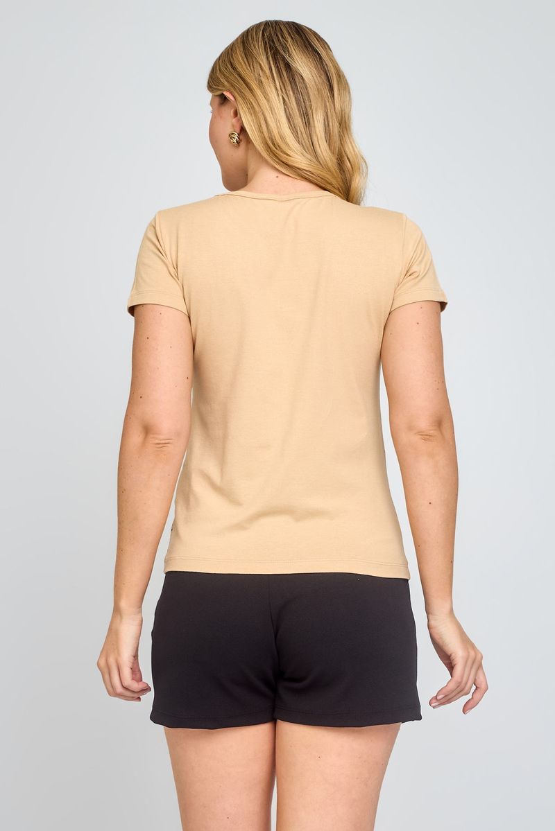 A Blusa Feminina Bege Caedu une conforto e elegância. Em viscose e elastano, toque suave e caimento perfeito. Roupa versátil para sua moda, visual sofisticado. Essencial.