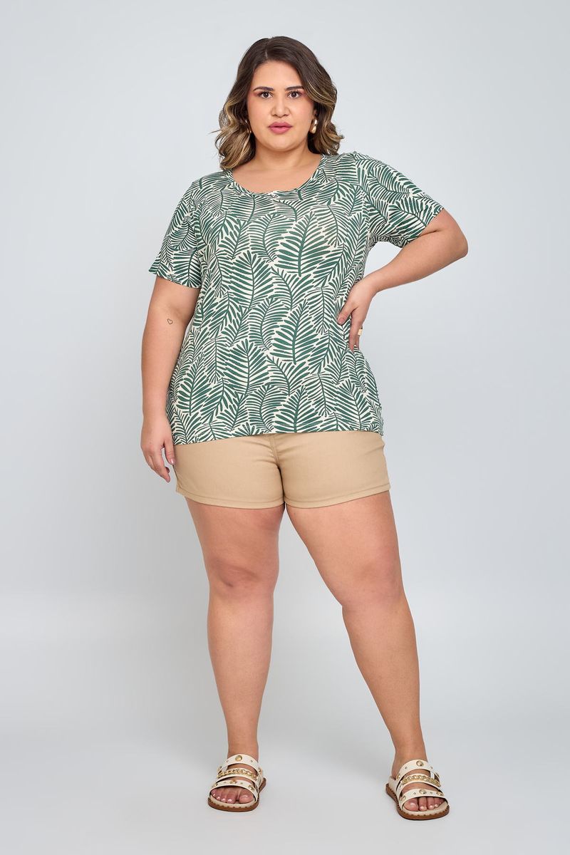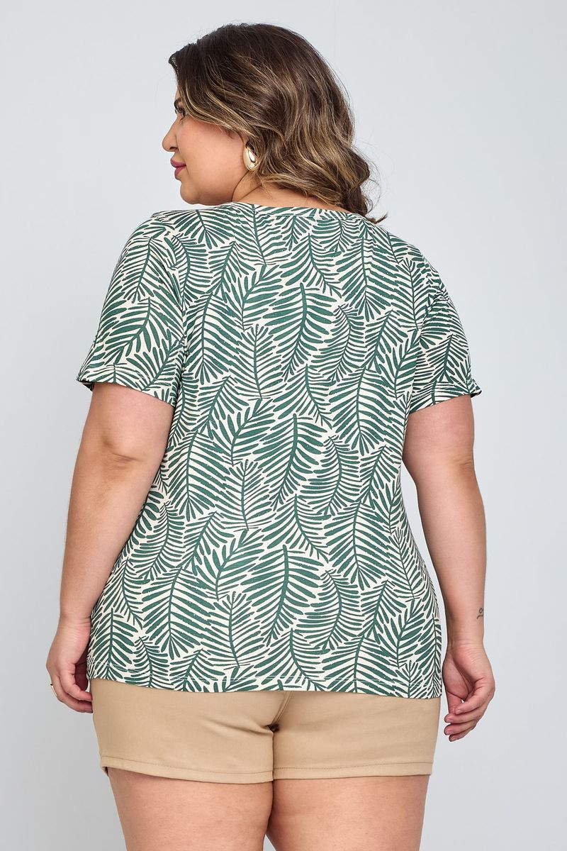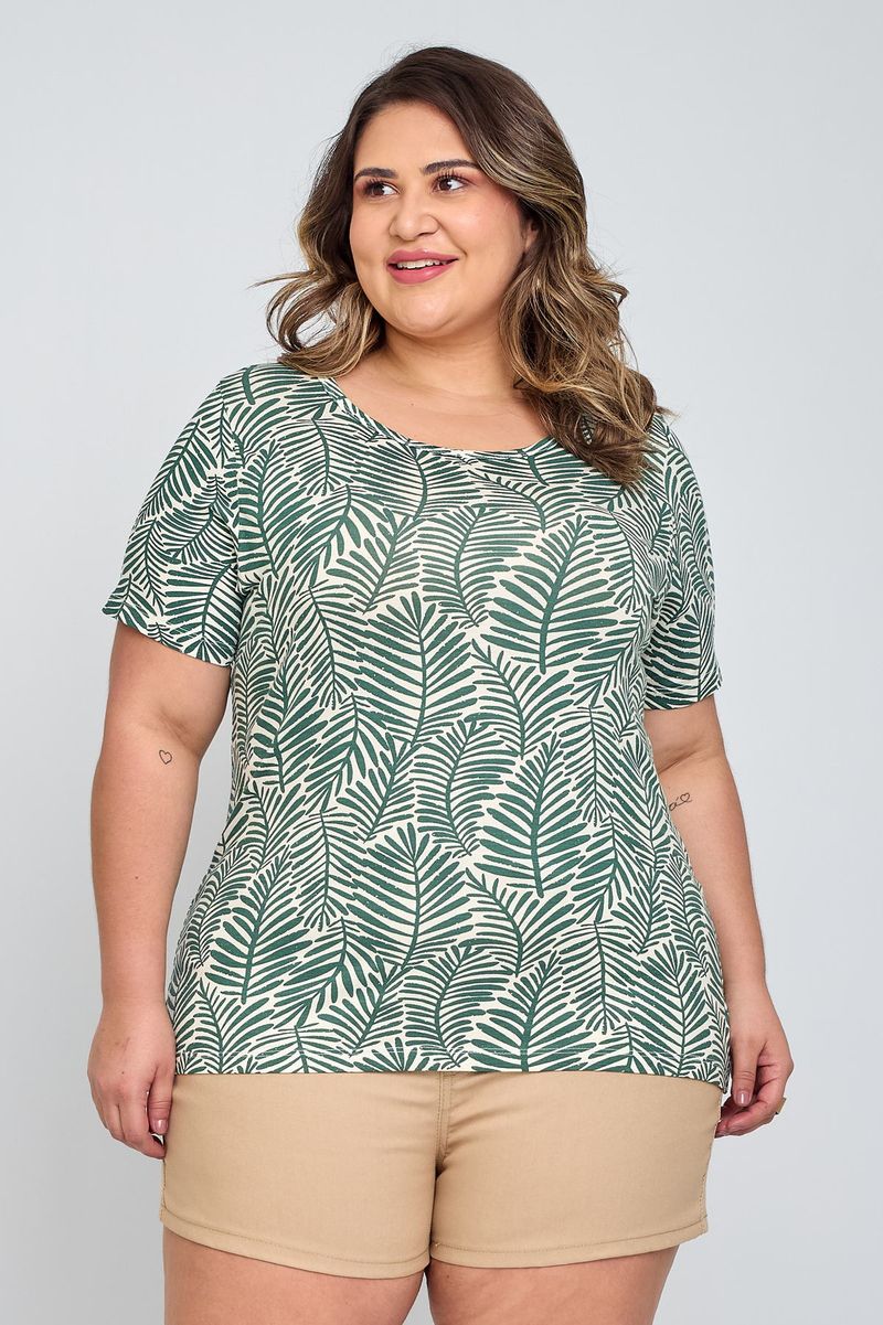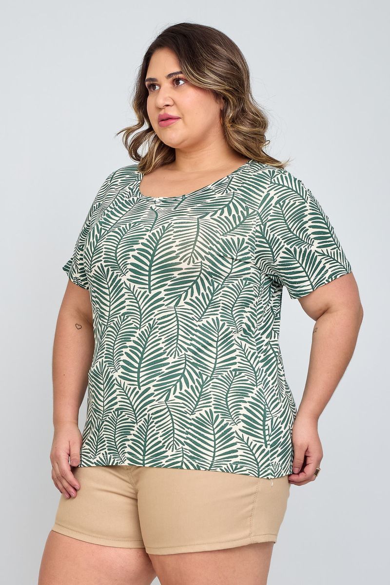 Descubra a Blusa Feminina Plus Size Caedu: conforto e estilo em uma só peça. Feita em viscolycra, com manga curta, gola redonda e estampa verde claro, é a roupa ideal para o dia a dia. Realce sua moda e sinta-se confiante!