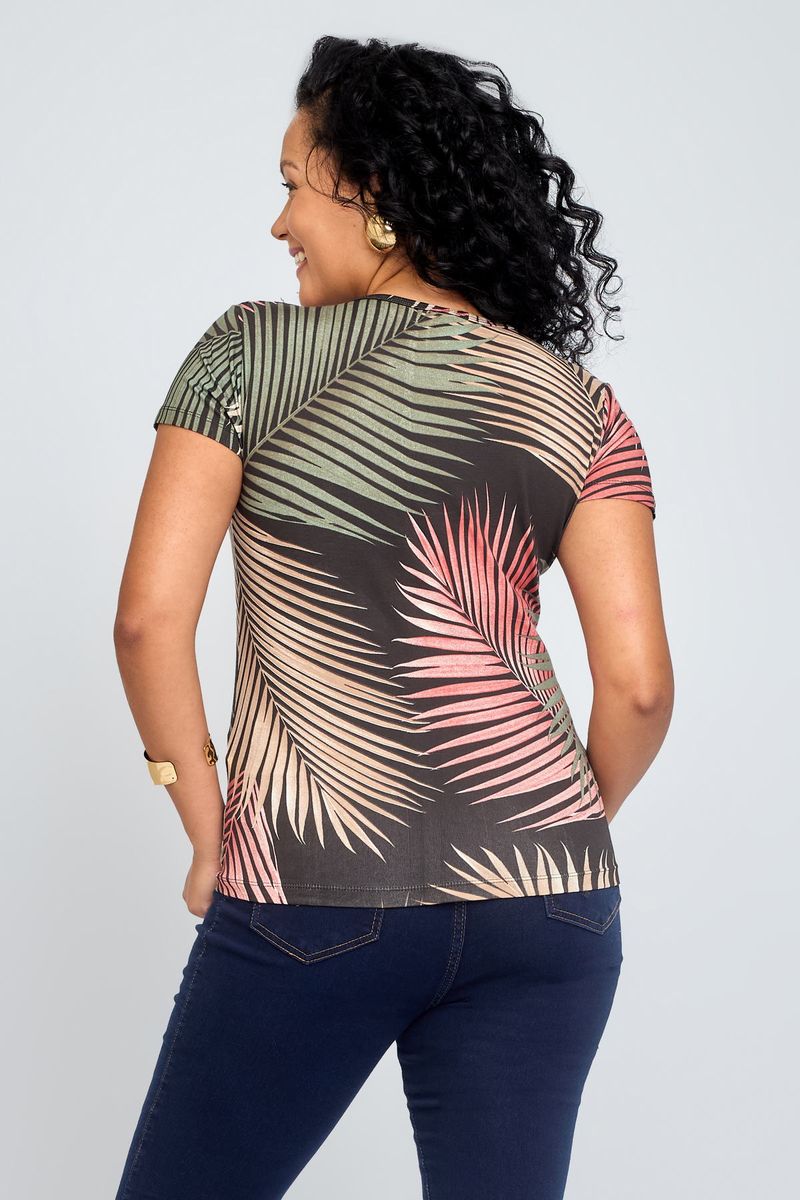 Sinta a leveza e o frescor da Blusa Feminina em Viscose Folhagem Preta da Caedu. Ideal para o verão, esta peça charmosa oferece toque suave, estampa delicada e versatilidade para seus looks. Com decote redondo e manga curta, é a escolha perfeita para um visual moderno e confortável.