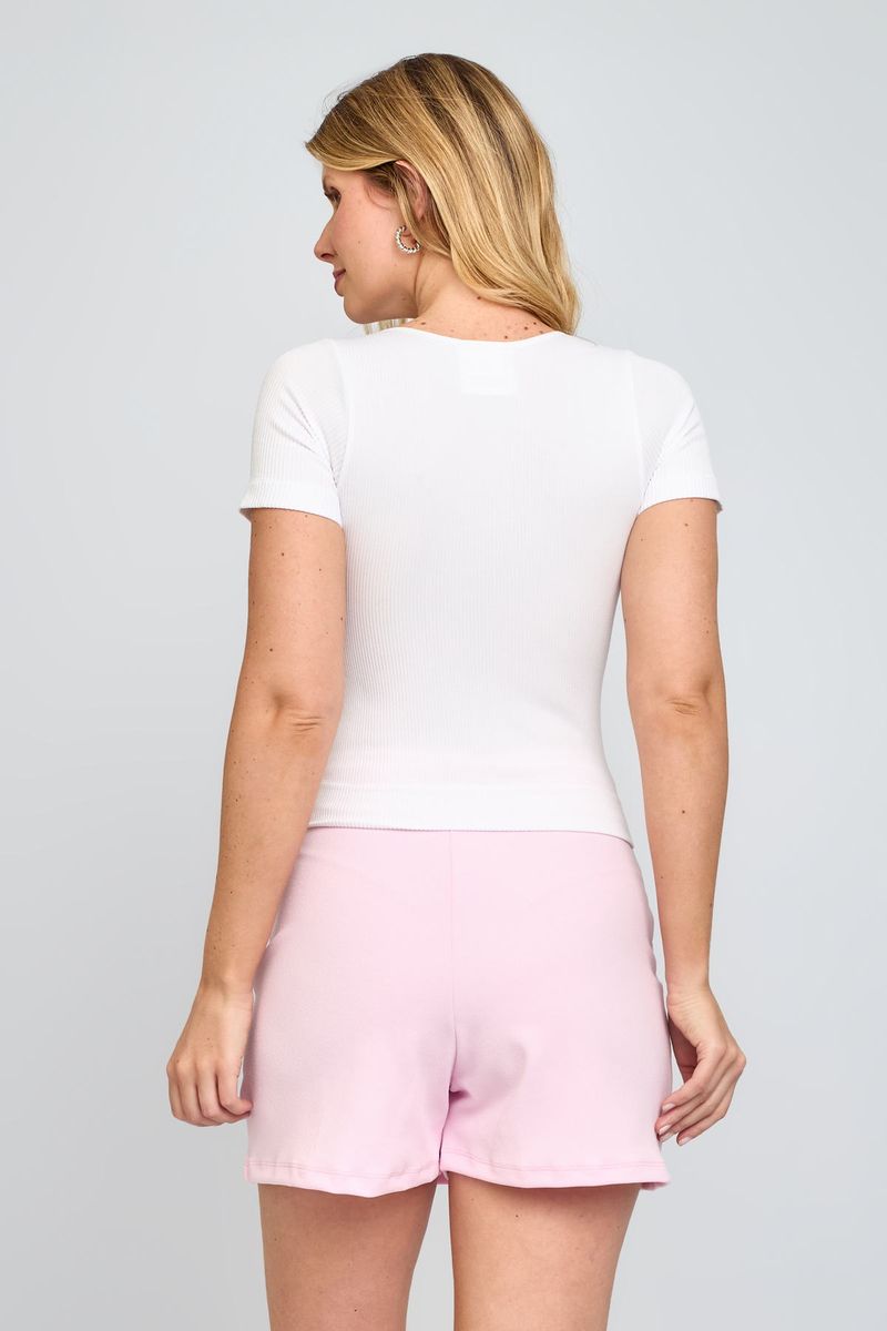 Blusa feminina de decote U e manga curta, na cor off white. Básica e versátil, perfeita para compor looks casuais e sofisticados.