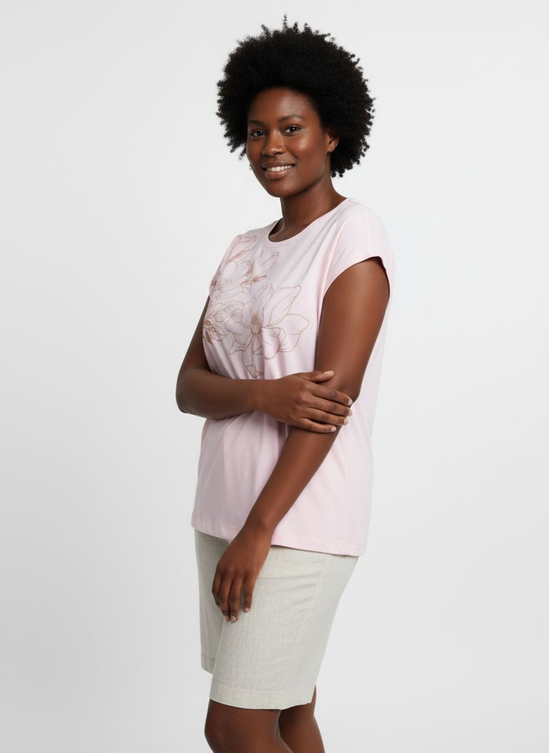 A Blusa Feminina Viscolycra Rosa oferece conforto e estilo. Em rosa claro, com caimento suave e estampa floral delicada no ombro, é perfeita para um visual charmoso e versátil. Sinta-se leve e elegante no dia a dia.