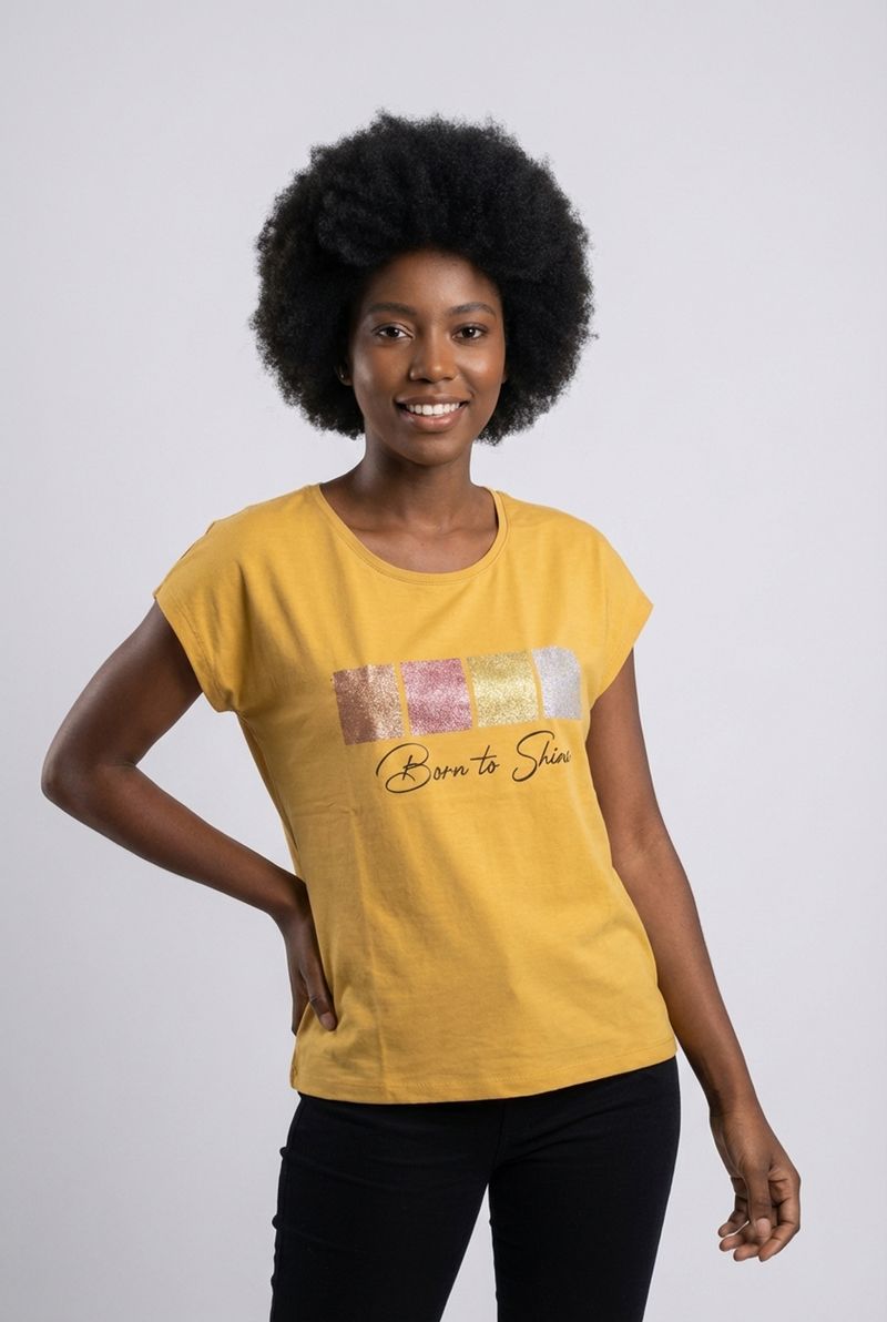 VestuárioFemininoBlusas e CamisetasBlusa fpm promo m/c visco est loc amarel amarelo escuro