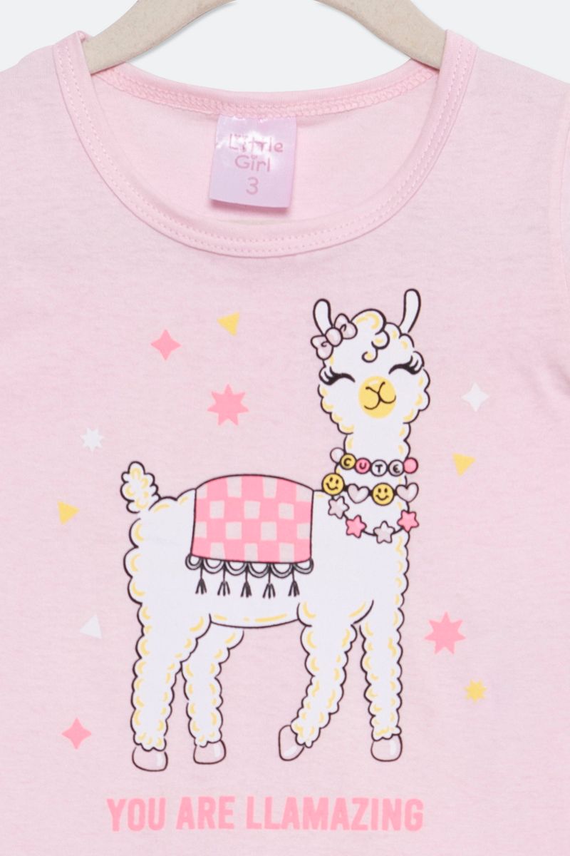 Blusa Infantil com Estampa Lhama Rosa Claro Tam 1 a 3