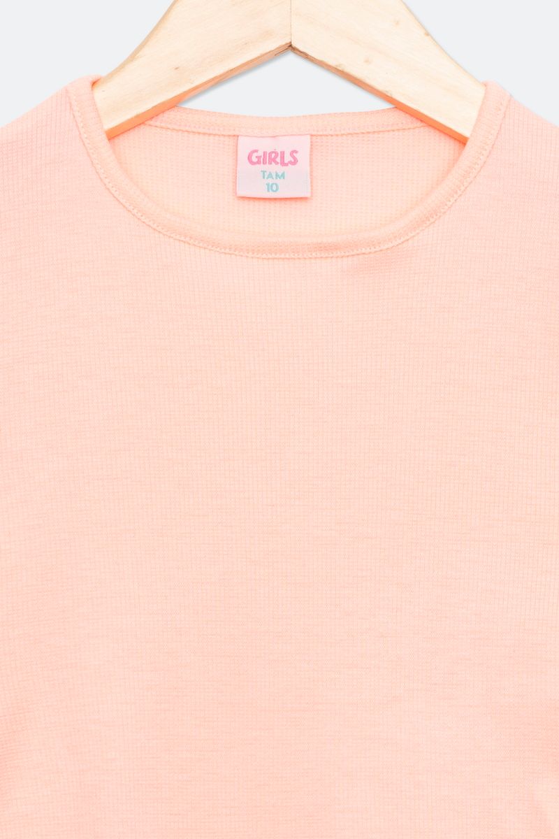 A Blusa Juvenil com Amarração Coral Neon da Caedu é ideal para meninas que buscam moda e personalidade. Seu design moderno, tecido em ribana e amarração lateral oferece conforto e estilo para looks autênticos.