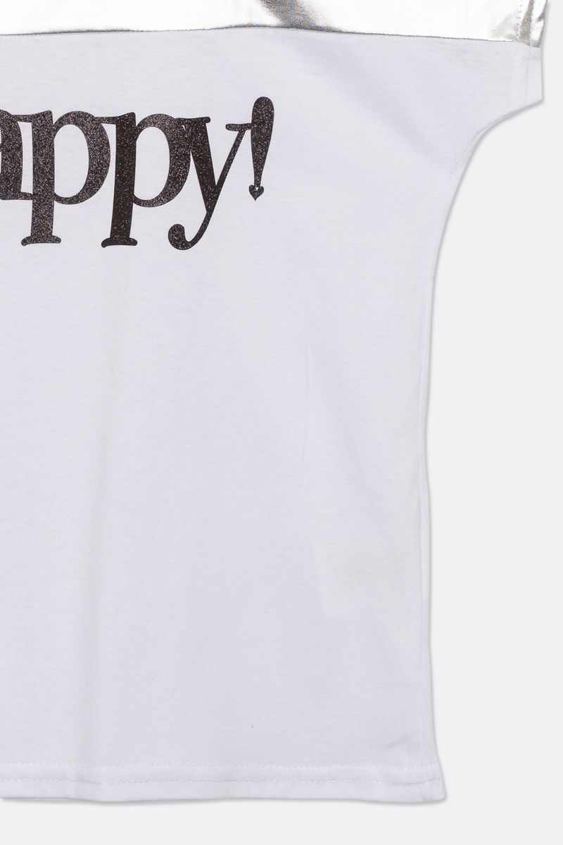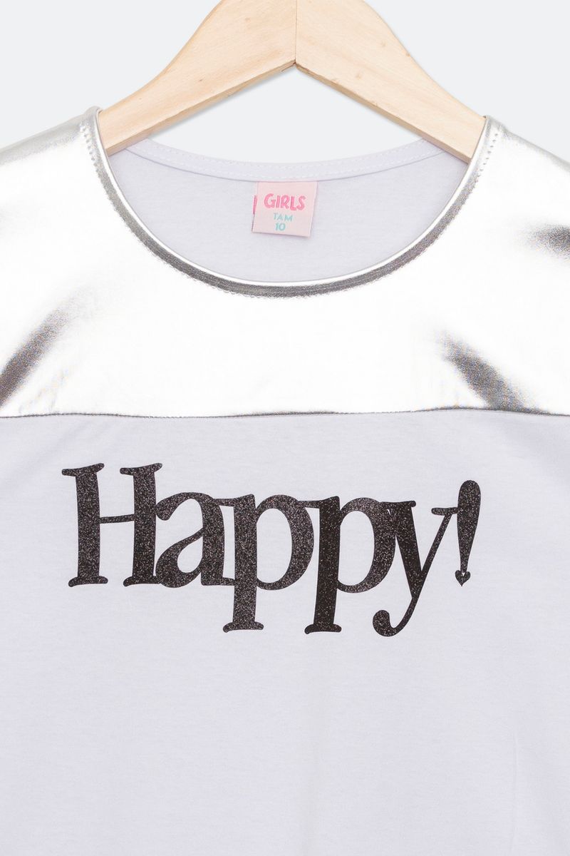 VestuárioInfantilNovidadesCamisetasBlusa Juvenil com Estampa Happy Branca Tam 10 a 16
