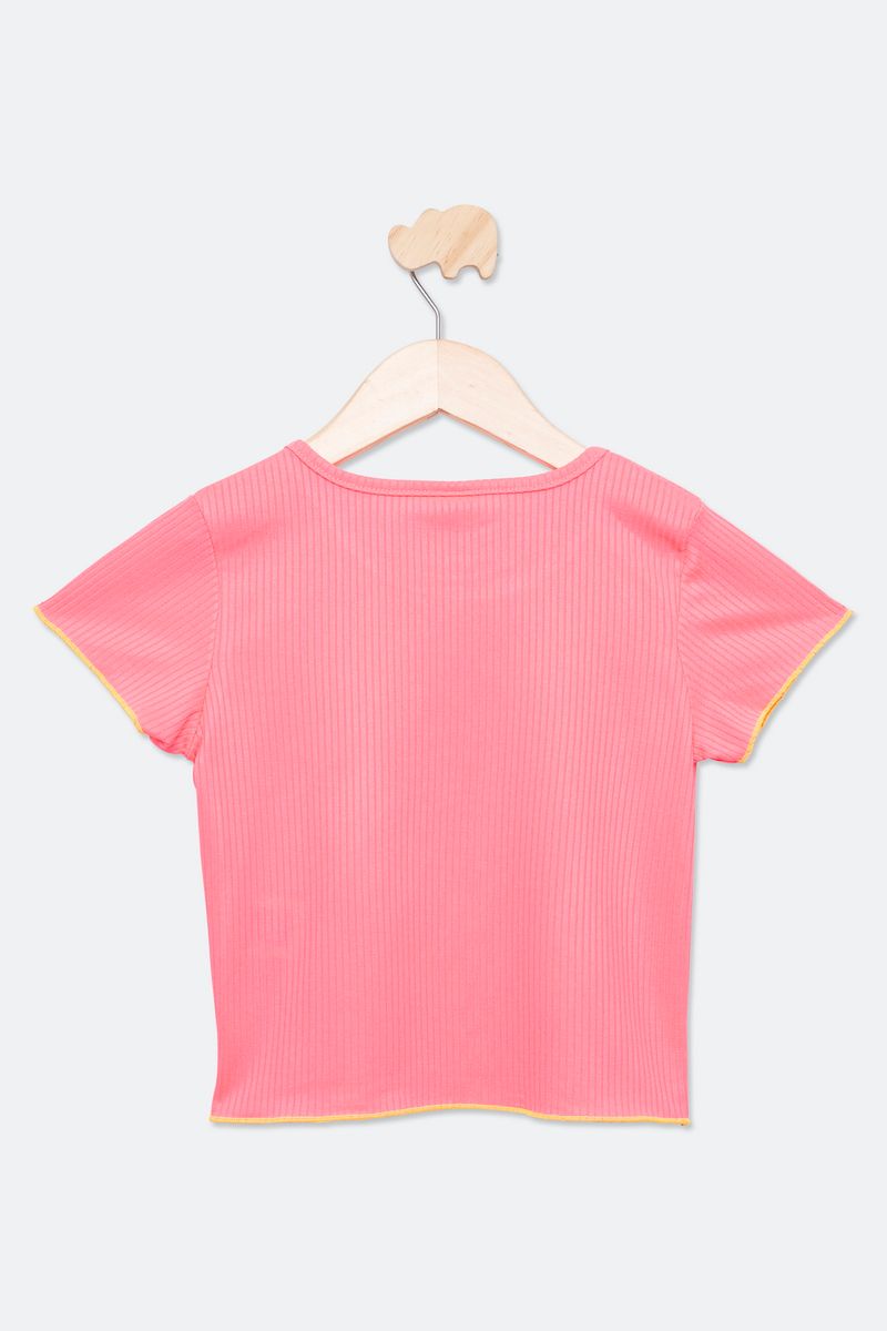 VestuárioInfantilNovidadesCamisetasBlusa Cropped Juvenil em Ribana Rosa Neo Tam 10 a 16