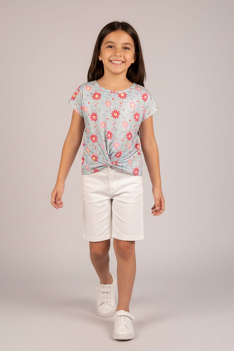 Combine a Blusa Infantil Floral Azul Claro com um short branco ou jeans para um look casual e divertido. Para um toque mais arrumado, uma saia leve e sandálias coloridas são ótimas opções. Complete o visual com tênis brancos para brincar com conforto ou sapatilhas para um passeio especial. A moda Caedu inspira!
