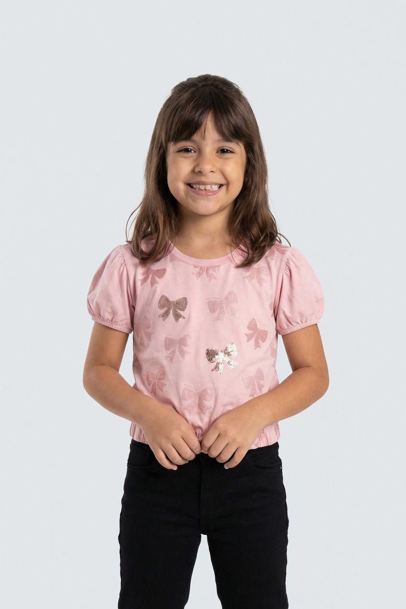 A Blusa Infantil Rosa Claro Caedu, em meia malha, oferece conforto e estilo. Com laços bordados e detalhe brilhante de lantejoulas, esta blusa infantil é ideal para o dia a dia. Uma roupa infantil charmosa e prática.