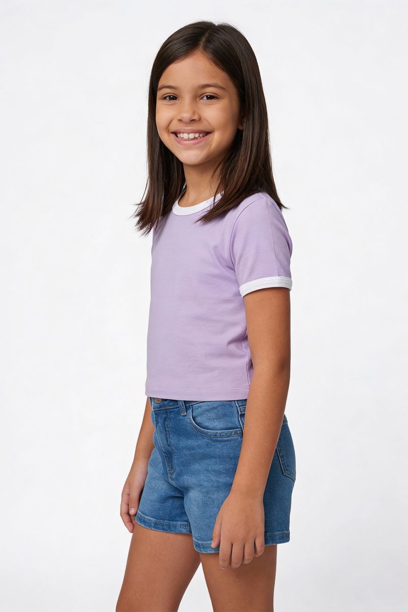 A Blusa Infantil Ringer de Algodão Caedu oferece conforto e estilo para as pequenas. Com design moderno em lilás e branco, esta blusa de algodão puro garante maciez e liberdade para brincar. Perfeita para um visual charmoso e atual.