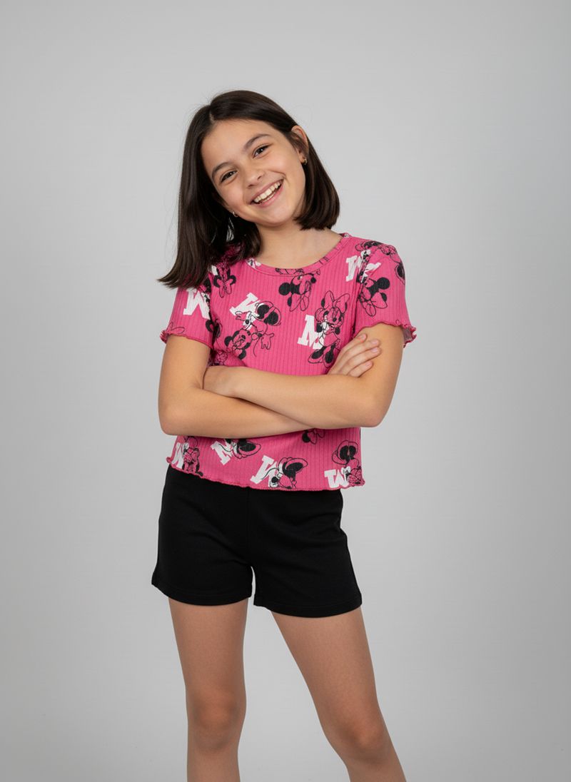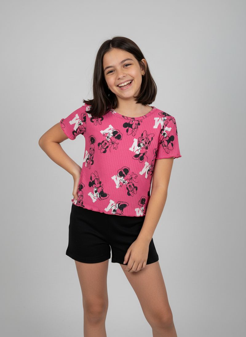 A Blusa Infantil Minnie Mouse Caedu em rosa neon canelada com babado oferece estilo e conforto para as pequenas. Com estampa divertida da Minnie, esta roupa infantil é perfeita para o dia a dia, garantindo um visual alegre e cheio de personalidade. Sinta a maciez da meia malha e o charme do design exclusivo.