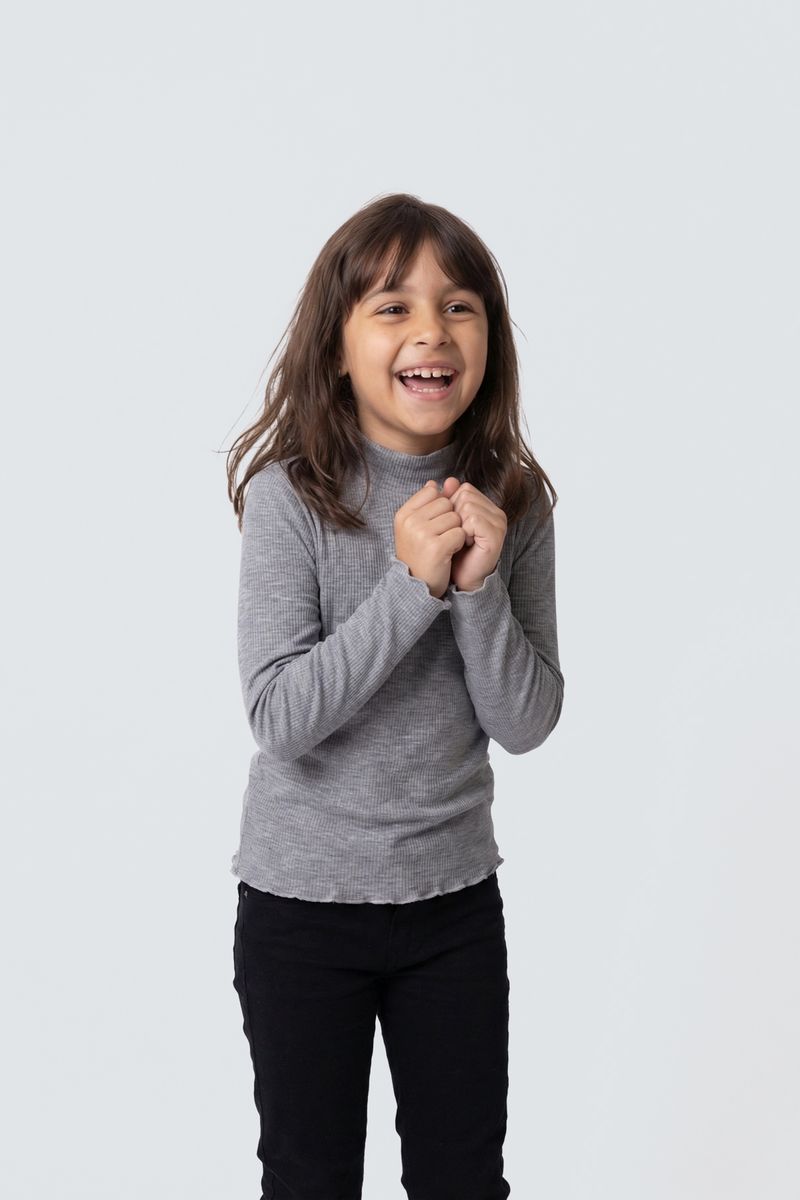 A Blusa Juvenil Gola Alta Canelada Cinza Mescla Caedu oferece charme e conforto para o dia a dia. Com sua textura canelada e gola alta, esta blusa de manga longa é perfeita para looks versáteis, garantindo estilo e bem-estar.