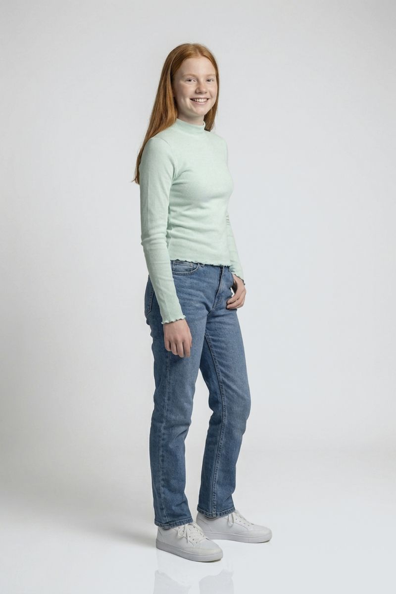 A Blusa Infantil Canelada Verde Menta Caedu é puro conforto e estilo para sua pequena! Feita em ribana macia, garante um toque suave na pele. O design com gola alta e babados delicados oferece um charme extra para o dia a dia. Ideal para looks modernos e divertidos!