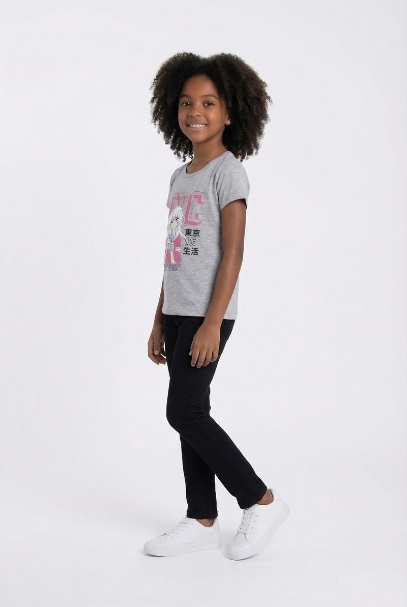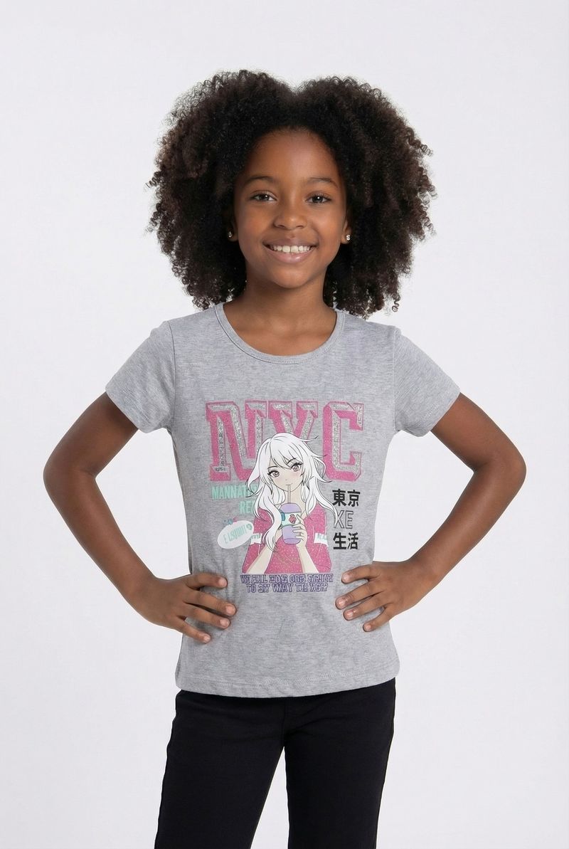 Descubra a Blusa Juvenil Caedu, perfeita para meninas que amam moda e conforto. Feita em cotton, esta roupa cinza mescla apresenta uma estampa vibrante de anime NYC, ideal para expressar um estilo único e divertido. Uma peça essencial para o guarda-roupa!