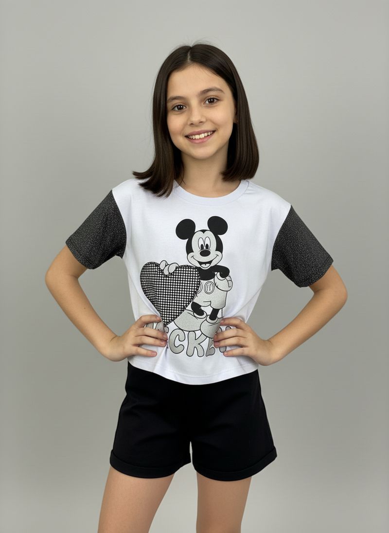 A Blusa Juvenil Mickey Mouse Coração Xadrez Caedu combina conforto e estilo. Feita em meia malha 100% algodão, é perfeita para o dia a dia. Com estampa vibrante do Mickey e mangas prateadas texturizadas, oferece um visual moderno e divertido para as meninas.