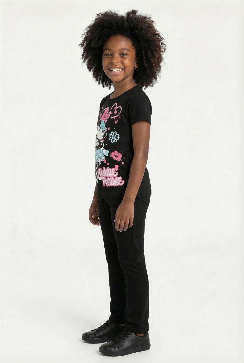 A Blusa Infantil Minnie Mouse Disney Estampada Preta Caedu é perfeita para as pequenas que amam estilo e conforto. Confeccionada em meia malha, oferece maciez e liberdade para brincar. Com a vibrante estampa da Minnie Mouse, traz alegria e um toque mágico ao dia a dia, sendo essencial na moda infantil.