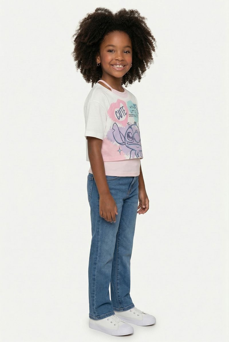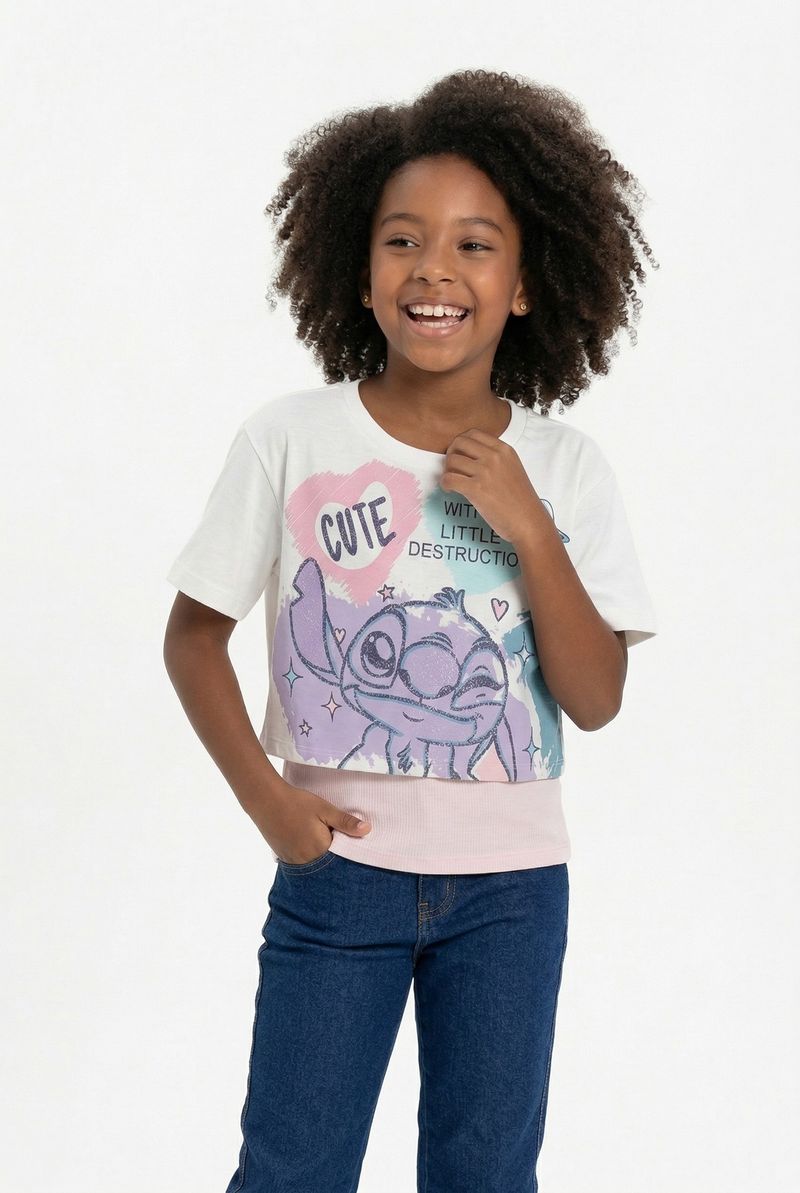 Descubra a Blusa Cropped Infantojuvenil Stitch Caedu, perfeita para as pequenas fashionistas. Confeccionada em meia malha, oferece conforto e um toque divertido com a estampa 'Cute' do Stitch e detalhes canelados em rosa. Ideal para um visual cheio de personalidade e alegria, esta peça é um destaque na moda infantil.