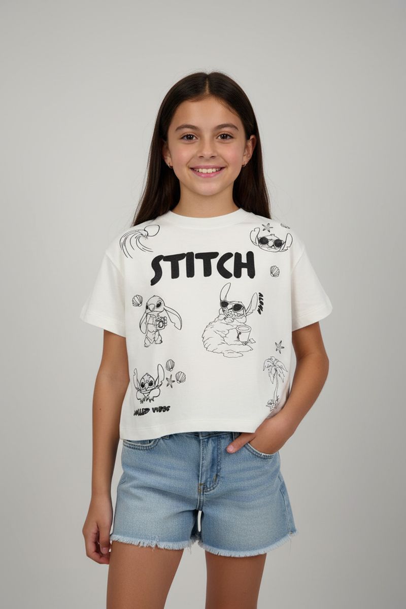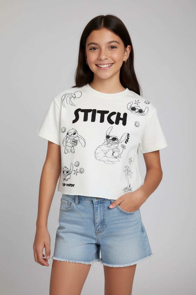 Blusa Caedu Infantil Juvenil Off White Estampada Stitch Tropical é a