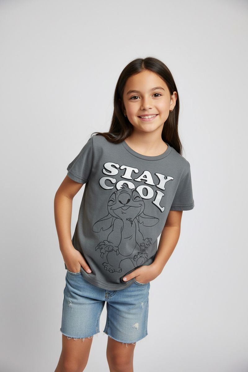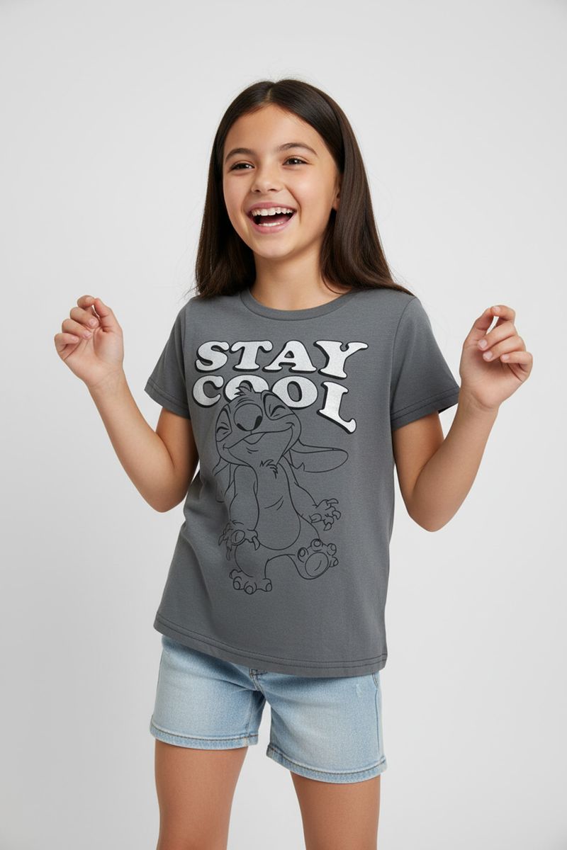 Blusa Infantil/Juvenil Menina Stitch 'Stay Cool' Chumbo Caedu
