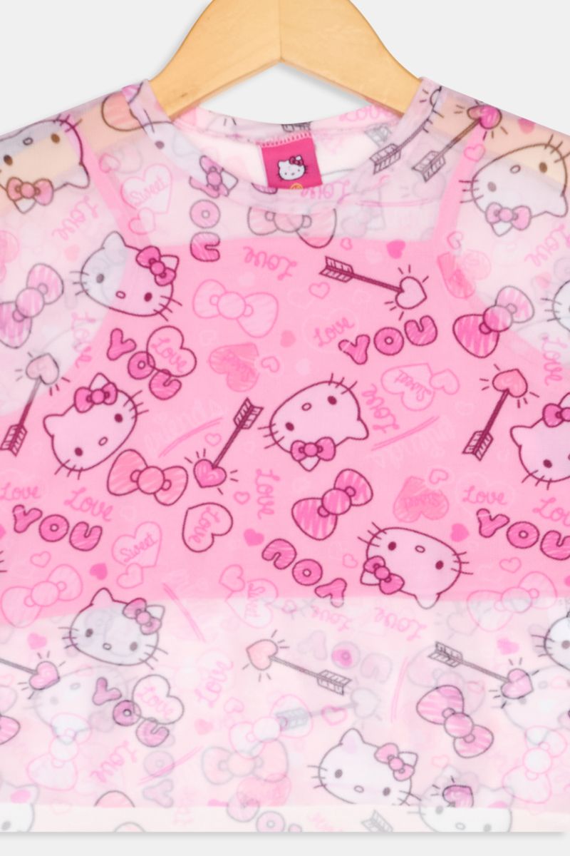 Estampa: Hello kitty, corações, laços, "love you", "sweet"