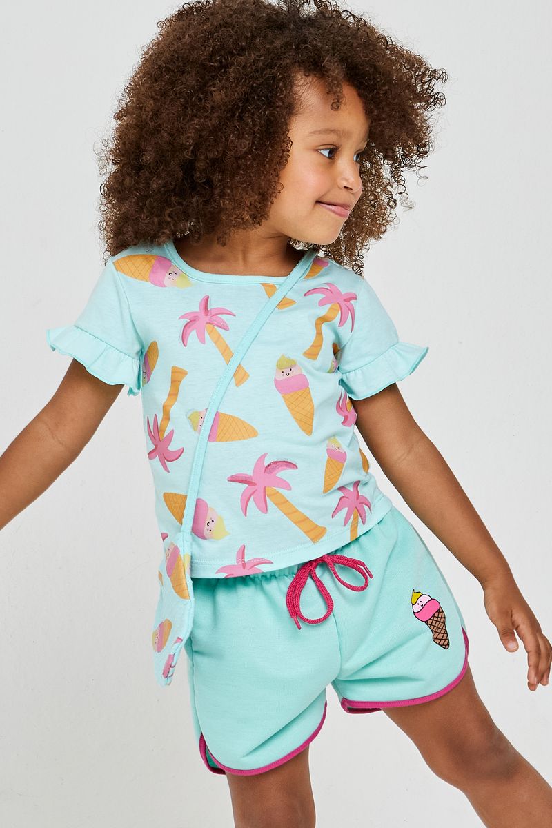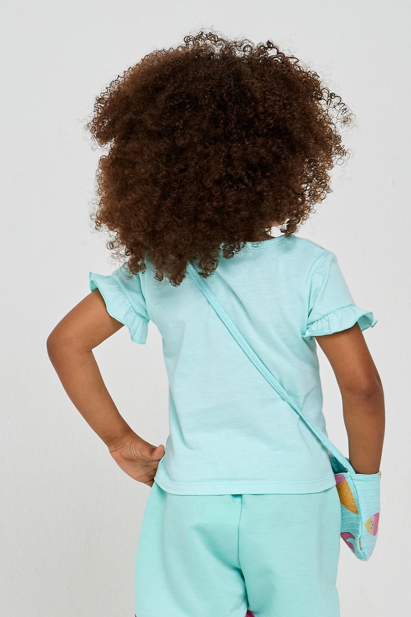 blusa infantil Caedu Sorvetin em verde água oferece conforto e estilo para as pequenas. Feita em
