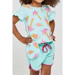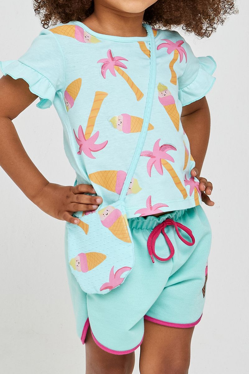 meia malha, garante leveza e liberdade. Com estampa divertida de sorvetes e coqueiros, é ideal para