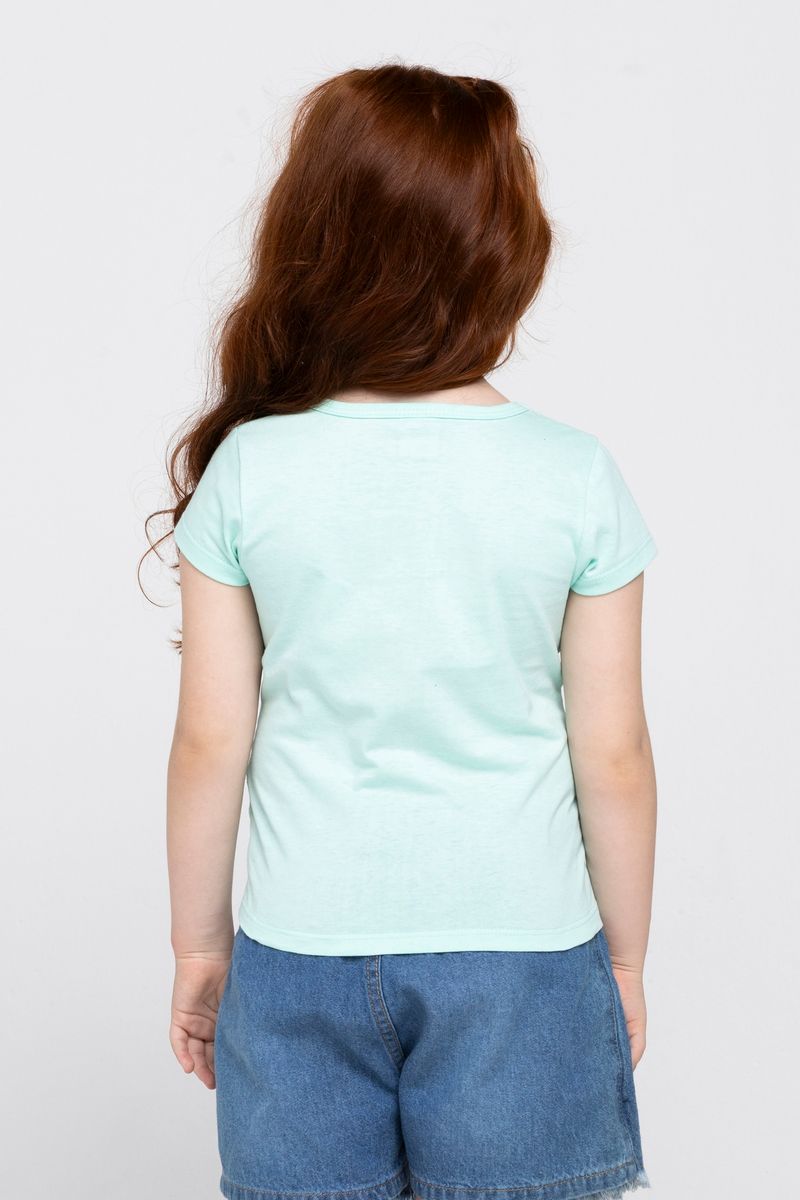 Blusa infantil estampada. A peça possui caimento reto e solto, manga curta e gola redonda.