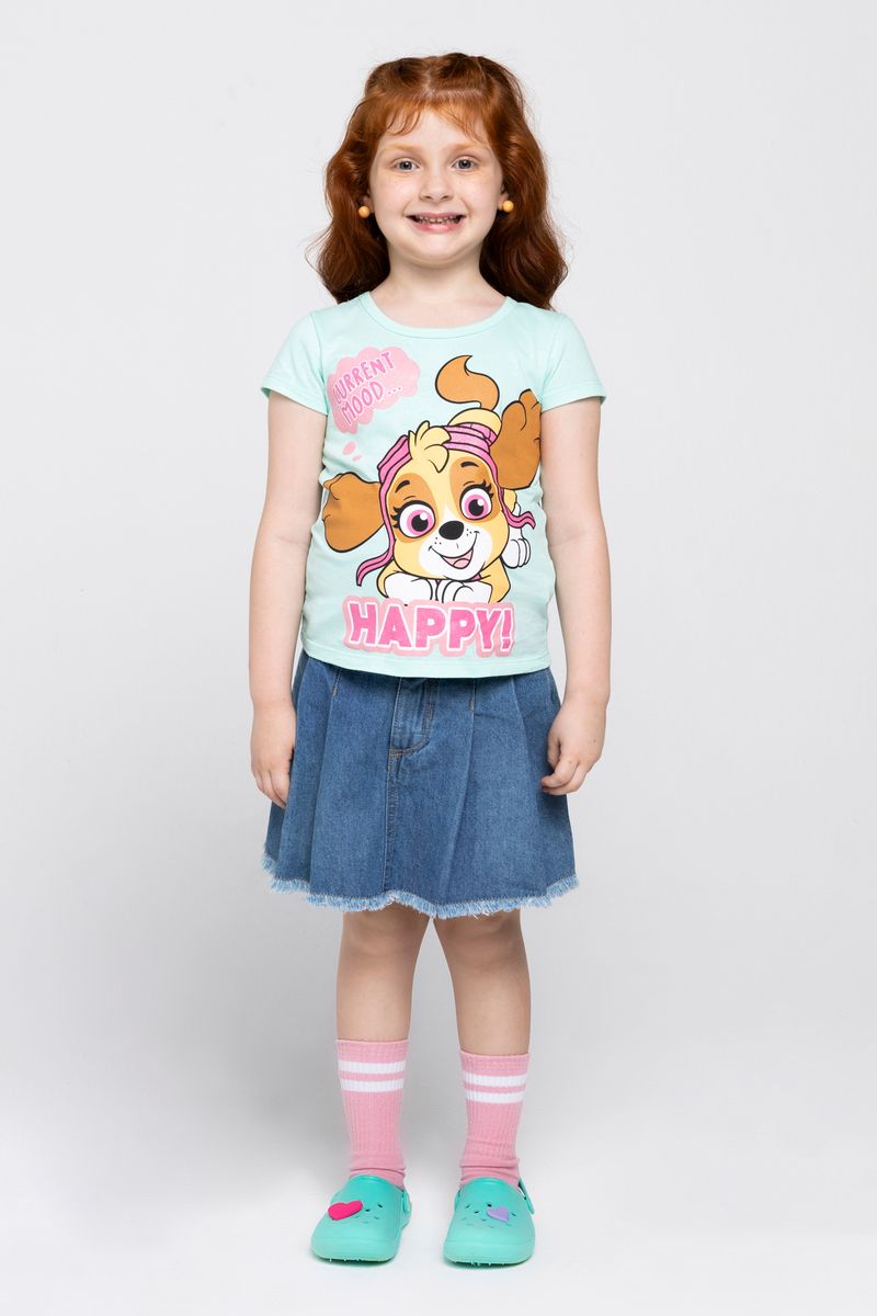 Blusa Infantil com Estampa Patrulha Canina Turquesa Tam 4 a 10