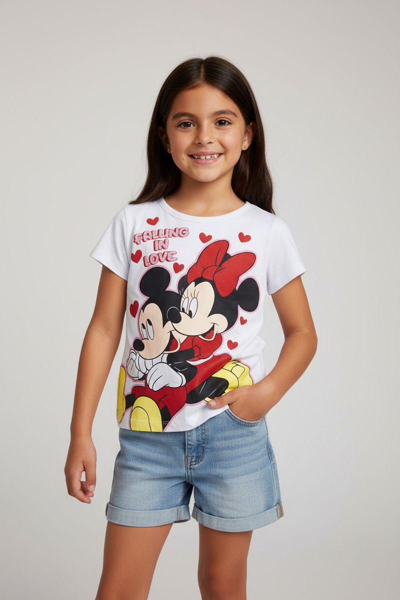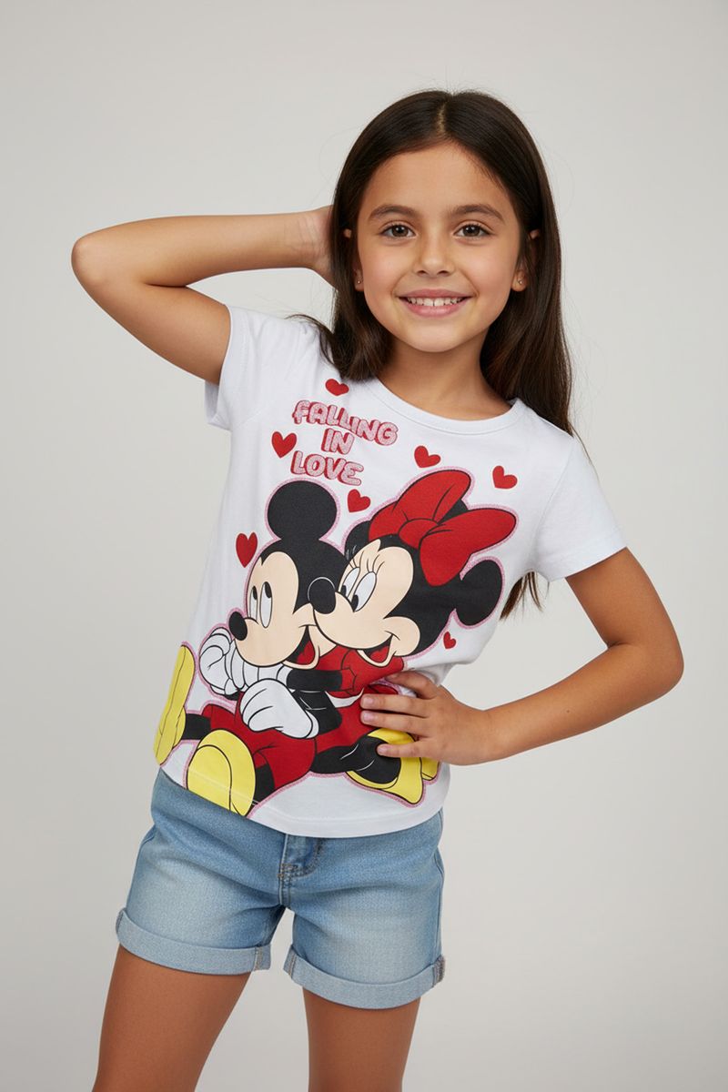 A blusa infantil Caedu com Mickey e Minnie 'Falling in Love' é a escolha perfeita para as pequenas. Confeccionada em meia malha, oferece conforto e estilo, garantindo um visual cheio de alegria. Uma peça essencial na moda infantil com bom preço.