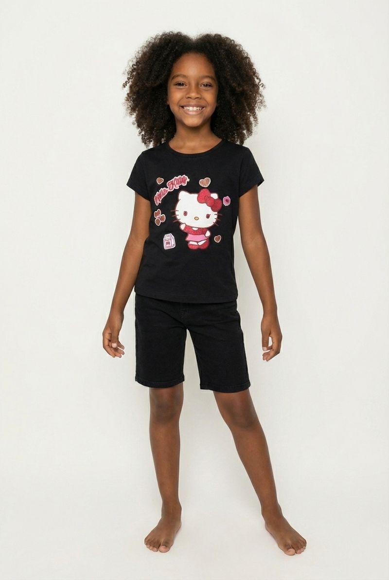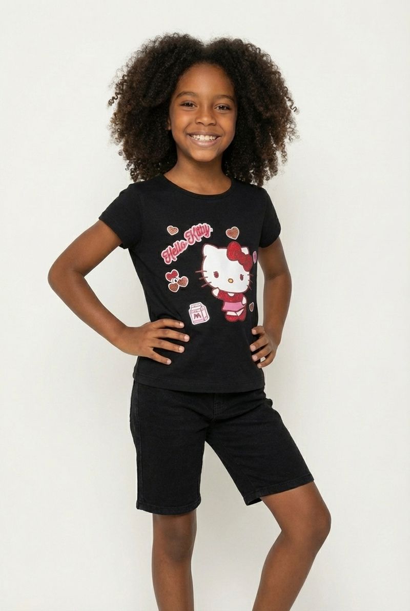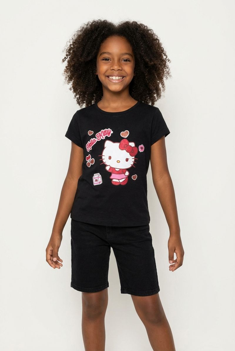A Blusa Infantil Hello Kitty Preta com Estampa Brilhante Caedu é a escolha perfeita para adicionar magia ao guarda-roupa da sua pequena. Confeccionada em meia malha, oferece conforto e leveza. Com a icônica Hello Kitty e detalhes brilhantes, esta roupa infantil garante um visual charmoso e divertido para qualquer ocasião.