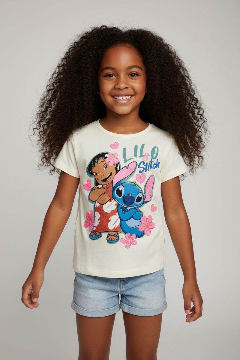 A Blusa Infantil Lilo & Stitch Off White Caedu traz a magia dos personagens favoritos em uma estampa vibrante. Feita em meia malha, oferece conforto e estilo para as pequenas fashionistas. Perfeita para um visual alegre e cheio de personalidade, esta roupa infantil é um convite à diversão.