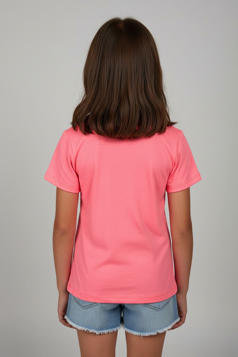 Combine a blusa rosa neon com shorts jeans para um look casual e despojado. Para um toque mais arrumado, use com uma saia rodada e sapatilhas. Complete o visual com acessórios como tiaras ou presilhas de cabelo, criando um conjunto encantador e cheio de personalidade para as pequenas fashionistas.